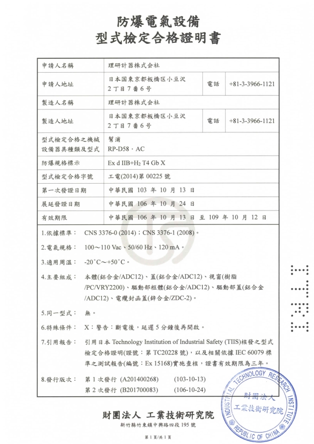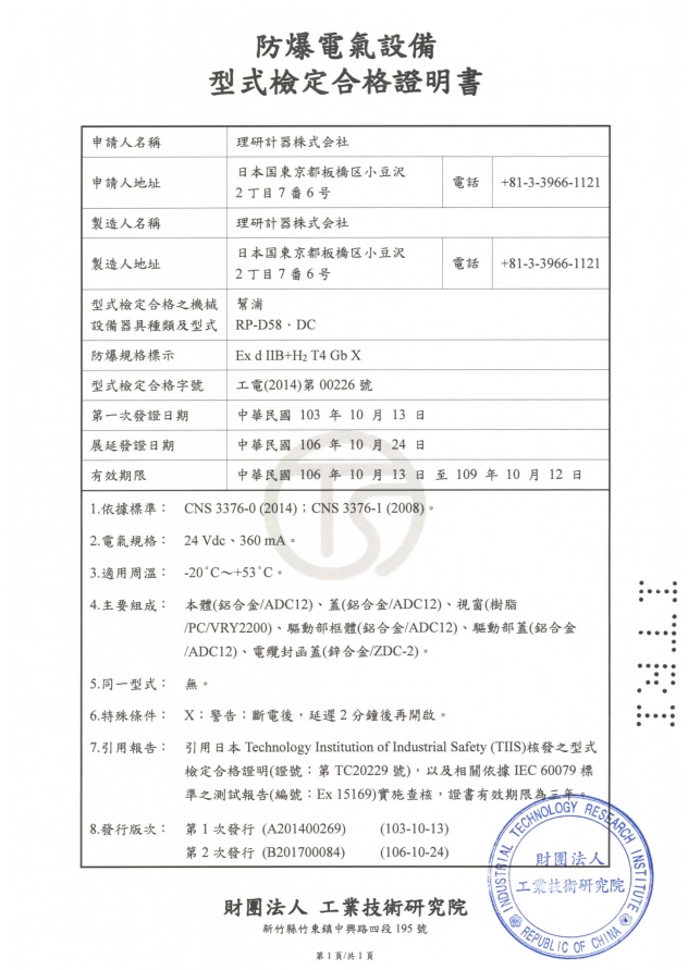 ITRI証RP-D58?DC工電(2014)第00226