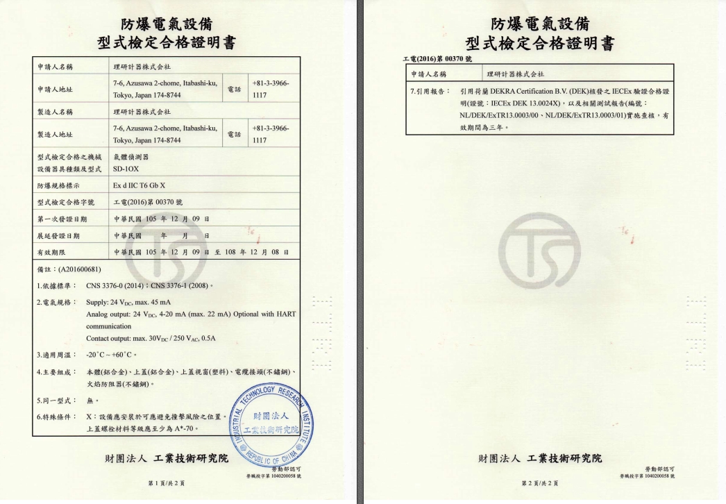 ITRI証 SD-1DOX 工電(2014)第00371