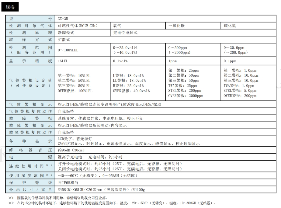 用于檢測4種成分 便攜式氣體檢測儀GX-3R