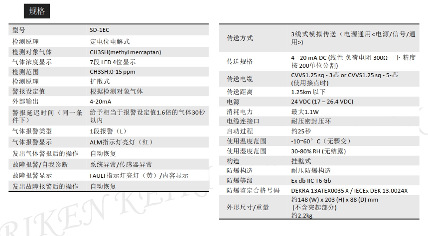 用于檢測硫化氫/一氧化碳的智能型氣體檢測部/甲基硫醇氣體檢測部/可以檢測加臭劑泄漏 SD-1EC