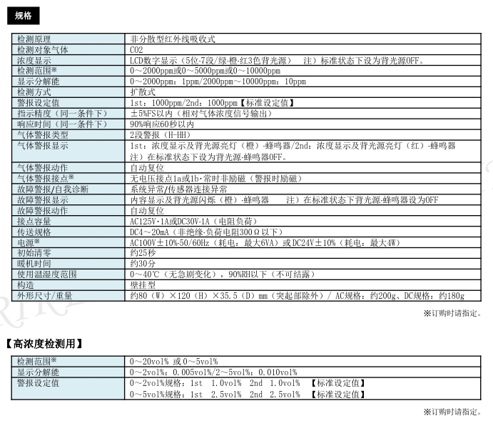 用于基于樓宇管理法、事務所衛生基準規則的CO2測定;