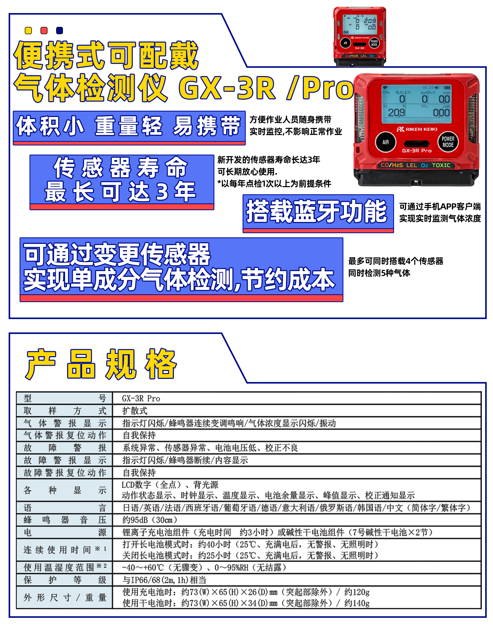 01/MINI個(gè)人用單一&復(fù)合氣體檢測(cè)儀GX-3R&Pro、GW-3理研計(jì)器旗下型號(hào)GX-3R/Pro氣體檢測(cè)儀是一款可穿戴的便攜式氣體檢測(cè)儀;在作業(yè)過(guò)程中,可任意佩戴在呼吸區(qū)域的任意位置,不影響作業(yè),實(shí)時(shí)檢測(cè)到周圍呼吸環(huán)境氣體濃度變化。