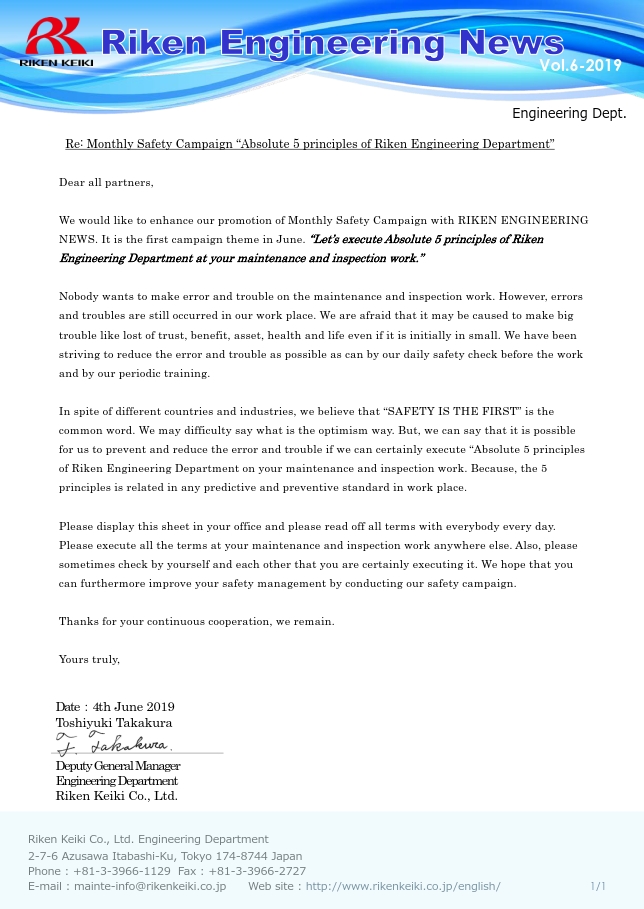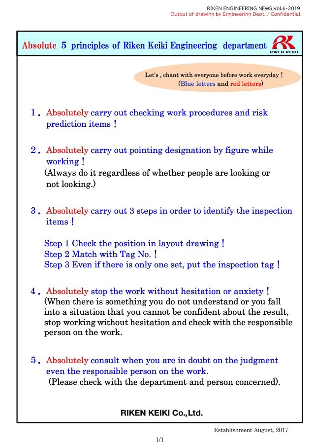維護作業中保證安全的五大原則Absolute 5 principles_ of Riken Engineering Department