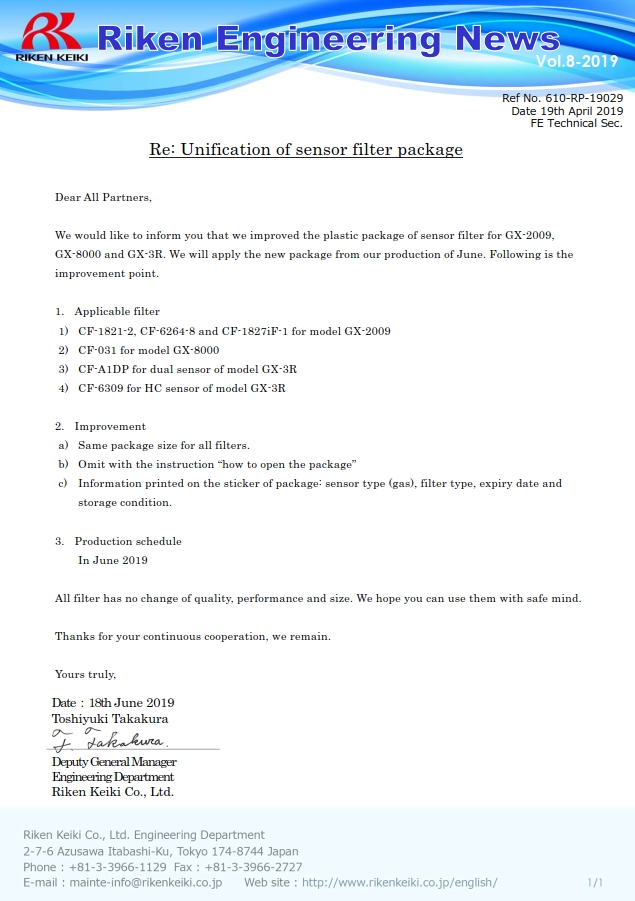 關于GX-8000/GX-2009/GX-3R內使用的過濾器更新和改善通知。