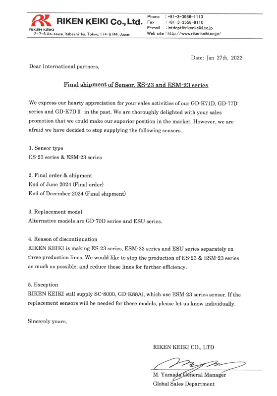 【最新】ES-23,ESM-23系列傳感器最終供貨時間通知